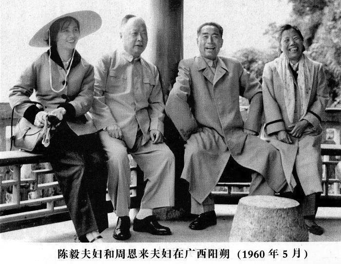 1960年5月,陳毅夫婦和周恩來夫婦在廣西陽朔。