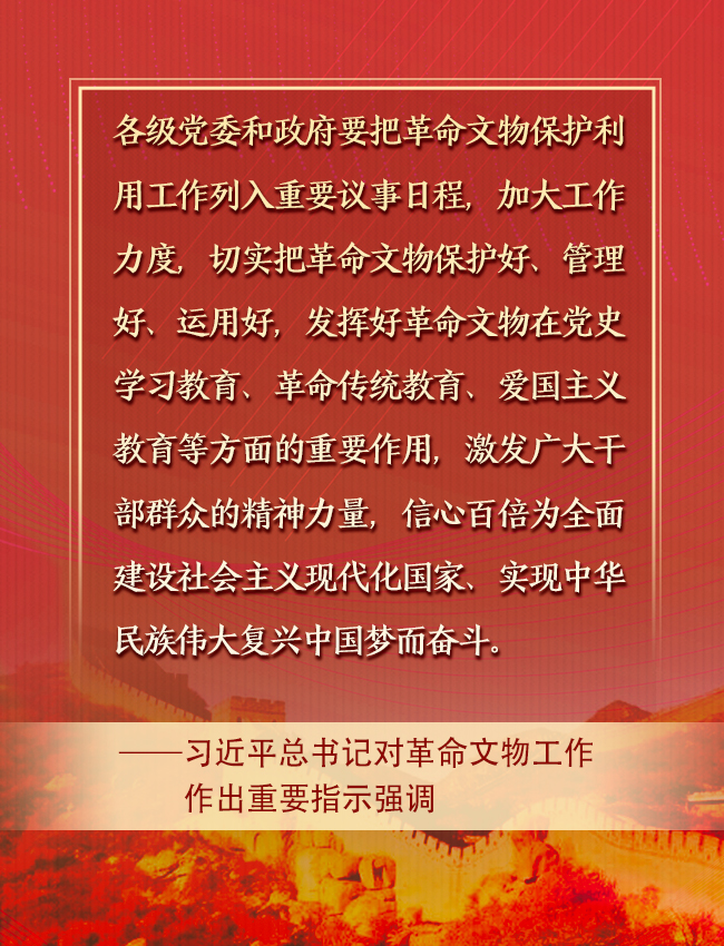 近日,習近平總書記對革命文物工作作出重要指示,深刻闡明革命文物工作的重大意義、目標任務(wù)和基本要求,為做好新時代革命文物工作提供了根本遵循。