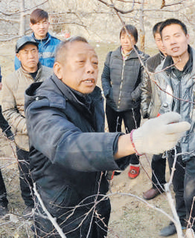 李保國(guó)在向村民講解果樹修剪知識(shí)。