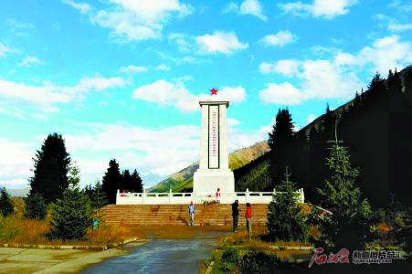 ????位于尼勒克縣獨(dú)庫(kù)公路和S315國(guó)道交會(huì)處的喬爾瑪烈士陵園被高山環(huán)抱,在雪嶺云杉間顯得莊重肅穆。????烈士陵園內(nèi),20米高的紀(jì)念碑聳立在藍(lán)天白云下,紀(jì)念碑上“為獨(dú)庫(kù)公路工程獻(xiàn)出生命的同志永垂不朽”18個(gè)大字蒼勁有力,紀(jì)念碑背面基座上鐫刻著修建天山獨(dú)庫(kù)公路時(shí)壯烈犧牲的烈士姓名。