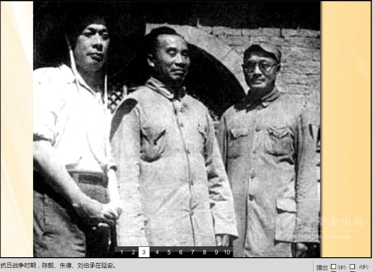 ????抗日戰(zhàn)爭(zhēng)時(shí)期,陳毅、朱德、劉伯承在延安。