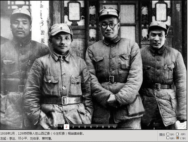 ????1938年1月,129師領(lǐng)導(dǎo)人在山西遼縣(今左權(quán)縣)桐峪鎮(zhèn)合影。左起:李達(dá)、鄧小平、劉伯承、蔡樹(shù)藩。
