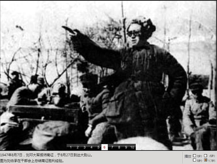 ????1947年8月7日,劉鄧大軍揮師南征,于8月27日到達(dá)大別山。圖為劉伯承在干部會(huì)上總結(jié)南征勝利經(jīng)驗(yàn)。