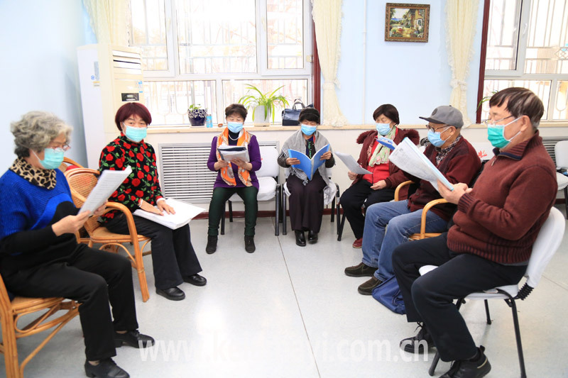 老人們?cè)诶雎方值澜鹕耆A居家養(yǎng)老日托中心唱歌。通訊員 馬銳 攝