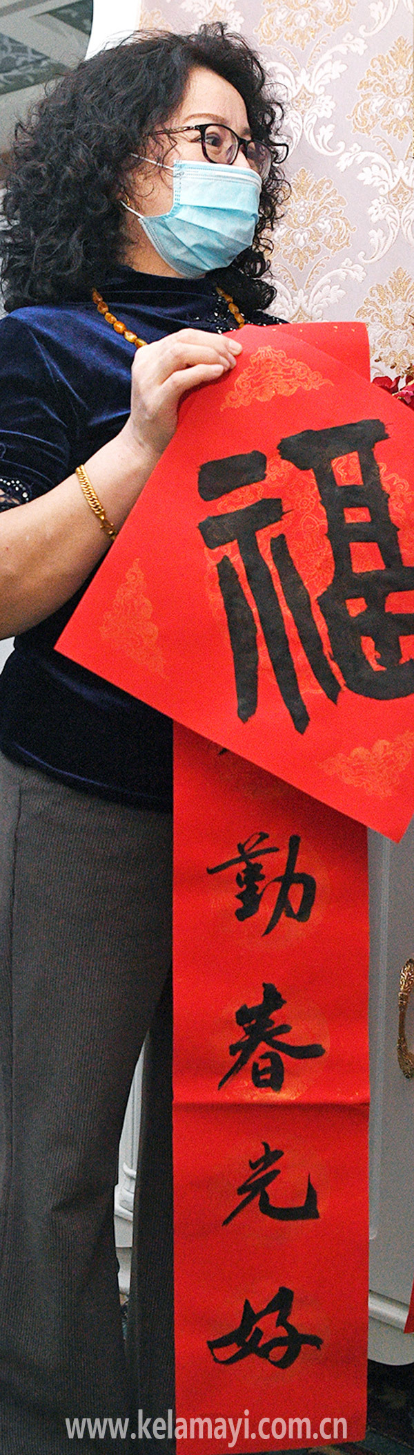 昨日,風(fēng)華社區(qū)居民阿孜古麗·阿不拉江收到了社區(qū)、駐社區(qū)“訪惠聚”工作隊(duì)送來(lái)的春聯(lián)和“福”字。本報(bào)全媒體首席記者 閔勇 攝