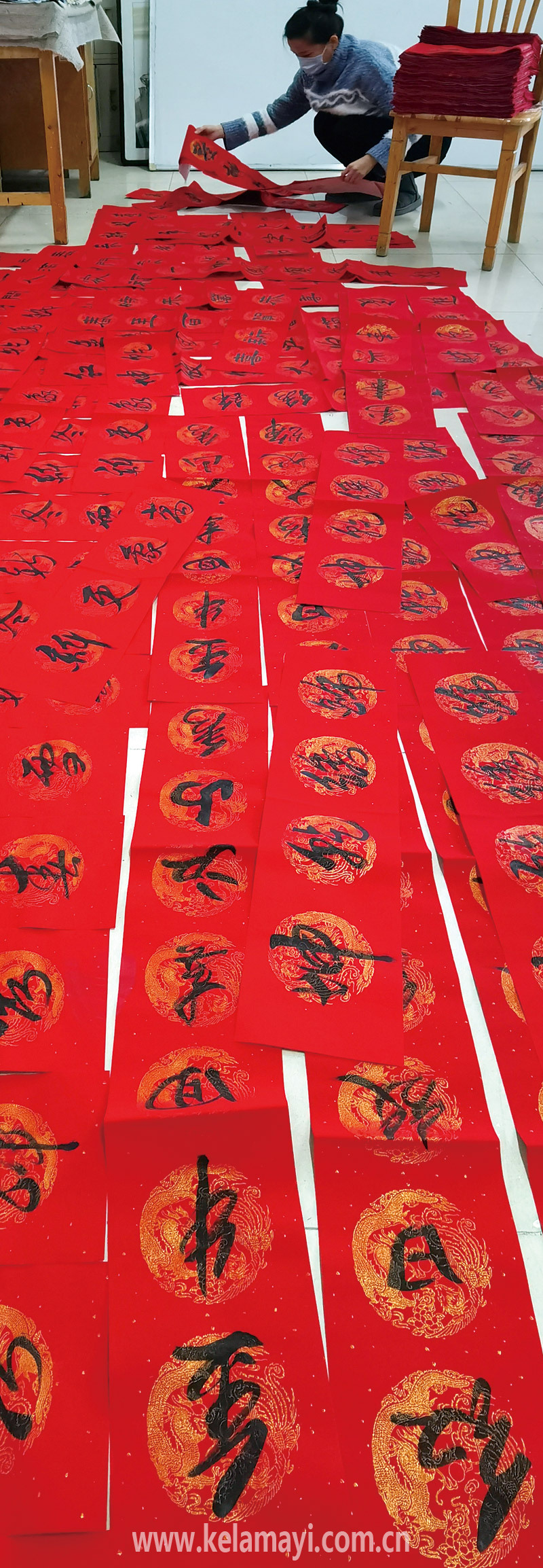 本報(bào)全媒體記者 戴旭虎 攝 2月6日,孩子們?cè)谔暨x春聯(lián)、福字。