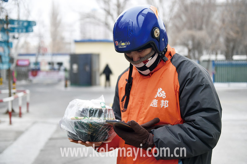 本報(bào)全媒體記者 彭召勇 攝 2月15日,送餐小哥查看訂單信息,準(zhǔn)確將外賣送達(dá)。