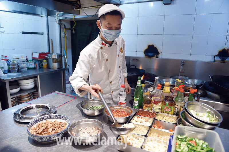 本報(bào)全媒體記者 彭召勇 攝 2月15日,阿羅湘廚小館的廚師堅(jiān)守崗位,為顧客做美食。