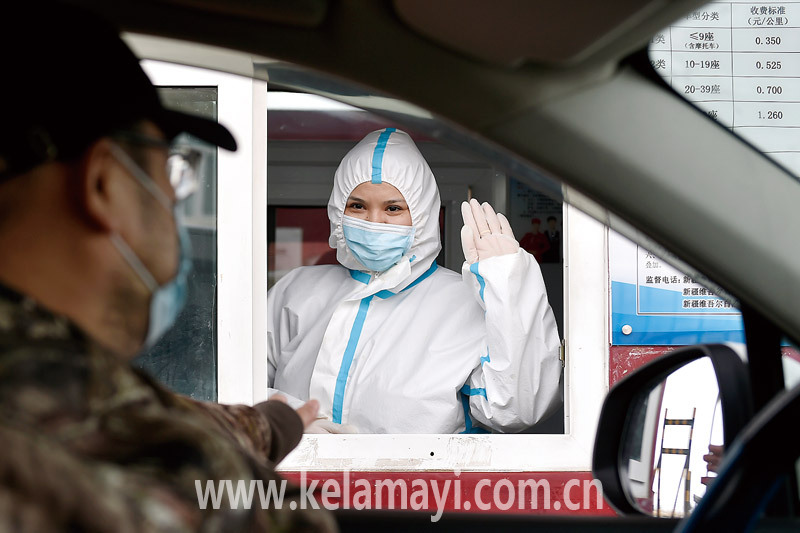 本報(bào)全媒體記者 張玨 攝 2月16日,我市西郊收費(fèi)站,收費(fèi)員向過往司機(jī)拜年。