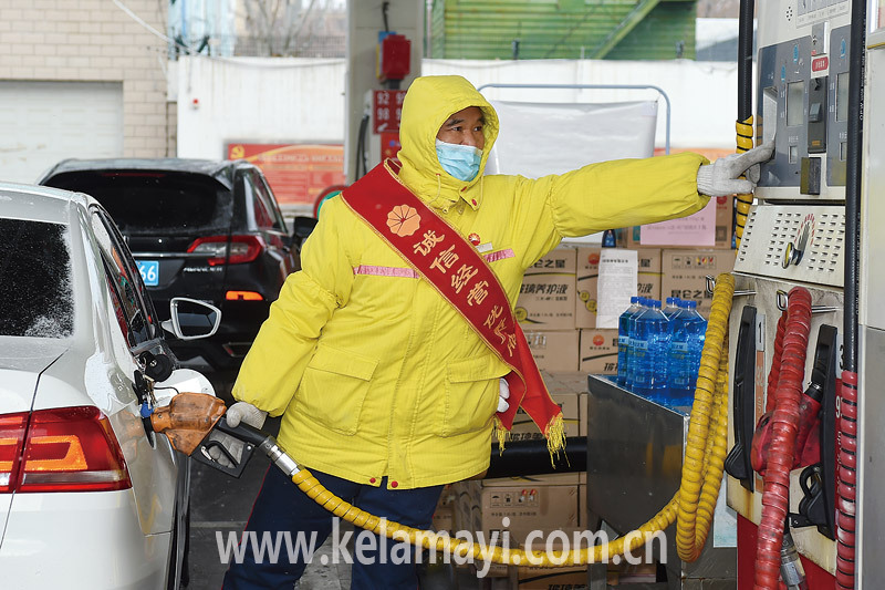 2月16日,苑泉加油站員工正在為出行車輛加油。 本報(bào)全媒體記者 李浩然 攝