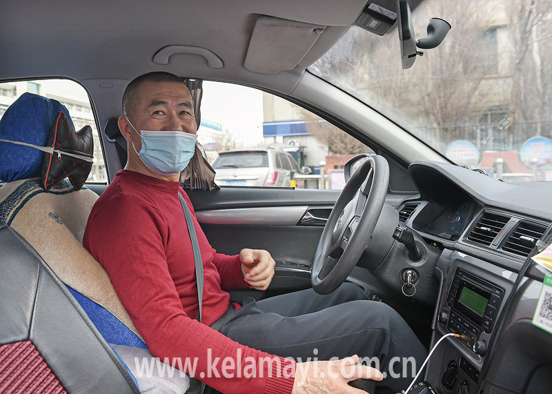 2月16日,出租車司機(jī)為乘客服務(wù)。 本報(bào)全媒體記者 努爾買買提·艾山 攝