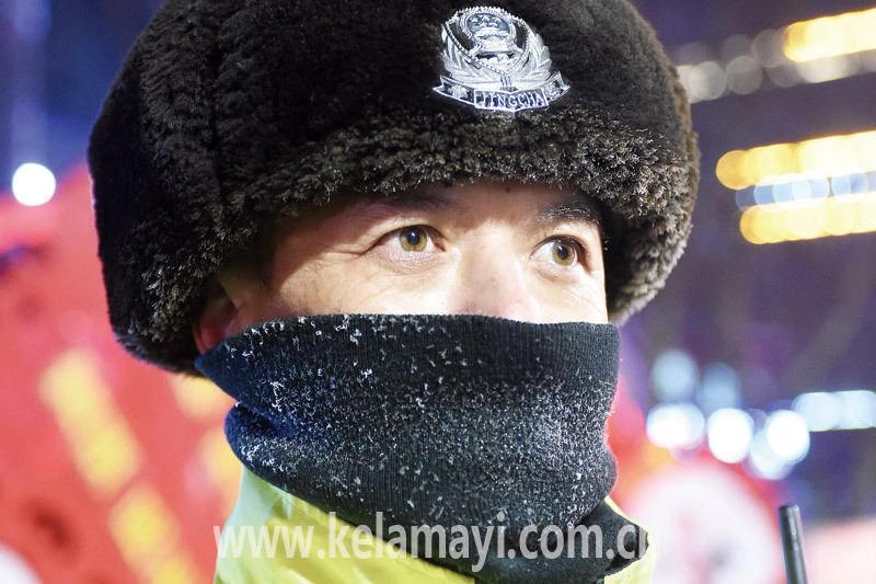 2月12日,白堿灘區(qū)(克拉瑪依高新區(qū))交警正在執(zhí)勤。本報(bào)全媒體記者 李浩然 攝