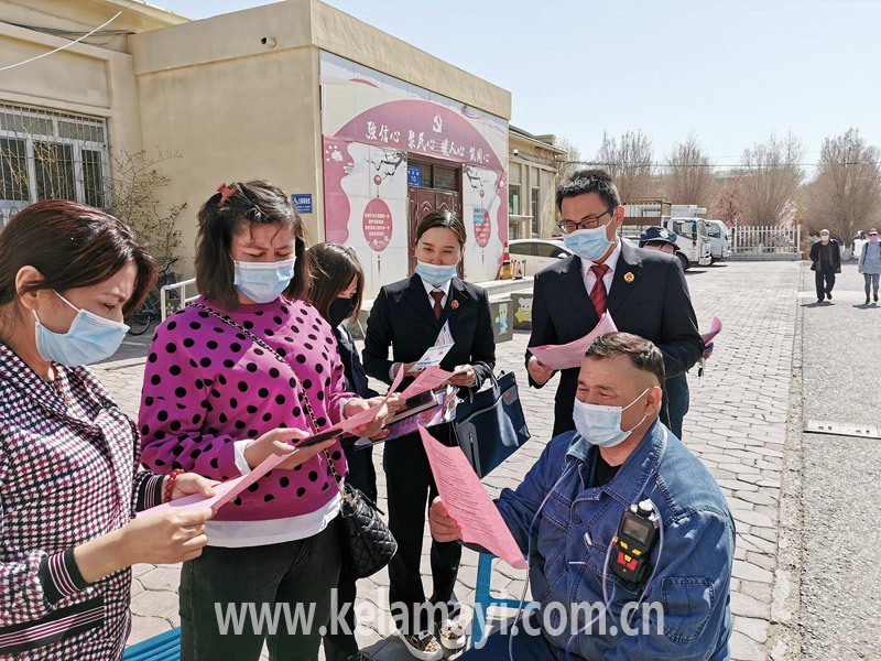 ????4月15日,白堿灘區(qū)(克拉瑪依高新區(qū))金龍鎮(zhèn)街道友好社區(qū),市檢察院工作人員正在給居民發(fā)放“國(guó)家安全日”宣傳單。當(dāng)天,該社區(qū)與聯(lián)點(diǎn)單位市檢察院共同開展“國(guó)家安全日”宣傳活動(dòng)?;顒?dòng)以擺放宣傳展版、設(shè)立咨詢臺(tái)、發(fā)放宣傳資料、現(xiàn)場(chǎng)解答咨詢等多種方式,向社區(qū)居民宣傳講解《國(guó)家安全法》《反恐怖主義法》《網(wǎng)絡(luò)安全法》等法律法規(guī)以及疫情防控相關(guān)法律知識(shí)。