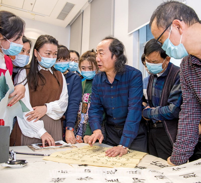 ????每天的講座結(jié)束后,書法家們都會與書法愛好者進行互動交流,對他們的臨帖作品進行點評,并提出改進建議。