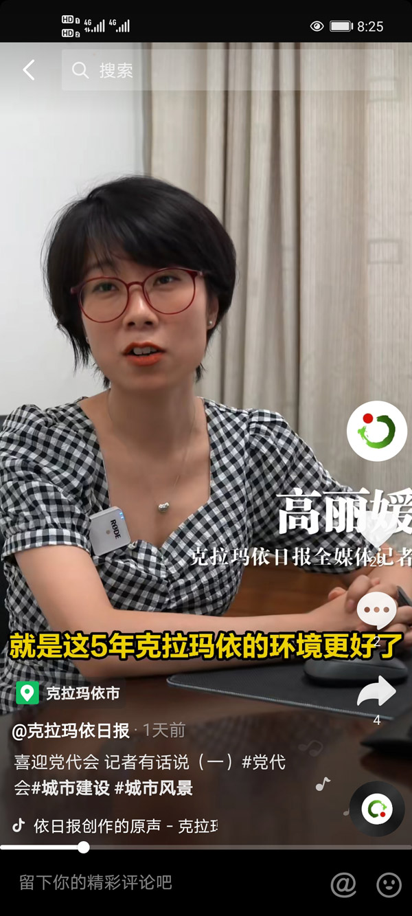 ????“克拉瑪依日?qǐng)?bào)”官方抖音號(hào)的“喜迎黨代會(huì)記者有話(huà)說(shuō)”系列短視頻作品,從親歷者、建設(shè)者、記錄者的角度,新穎生動(dòng)地傳遞“克拉瑪依聲音”、呈現(xiàn)“克拉瑪依故事”。