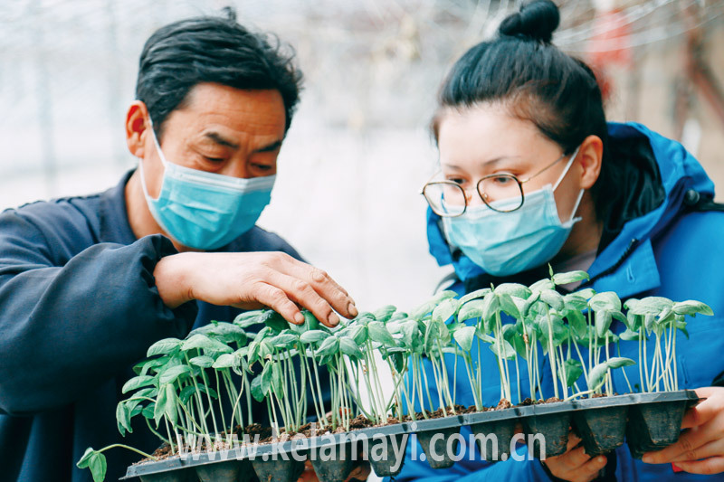 紀檢監(jiān)察干部來到溫室大棚與村民同勞動、話春耕。