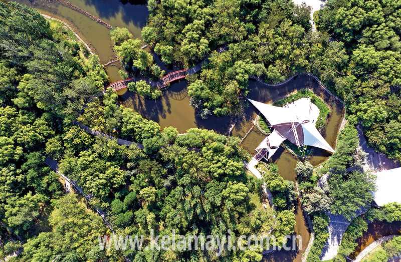 ????隨著城東金龍湖建設(shè)、城南紅山湖建設(shè)、南郊古海生態(tài)公園環(huán)境治理等一系列生態(tài)改善項目的實施,以及在綠化美化工程的大力推進下,截至2020年年底,我市已建成區(qū)綠地率39.8%,綠化覆蓋率43.5%,一座戈壁荒灘上的森林城市正拔地而起,天藍、地綠、水清已成為克拉瑪依的亮麗名片。