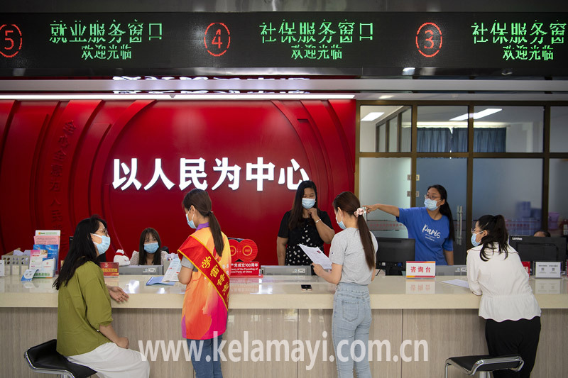 本報(bào)全媒體首席記者 閔勇 攝 基層工作人員在昆侖路街道一站式服務(wù)中心為居民辦理業(yè)務(wù)。