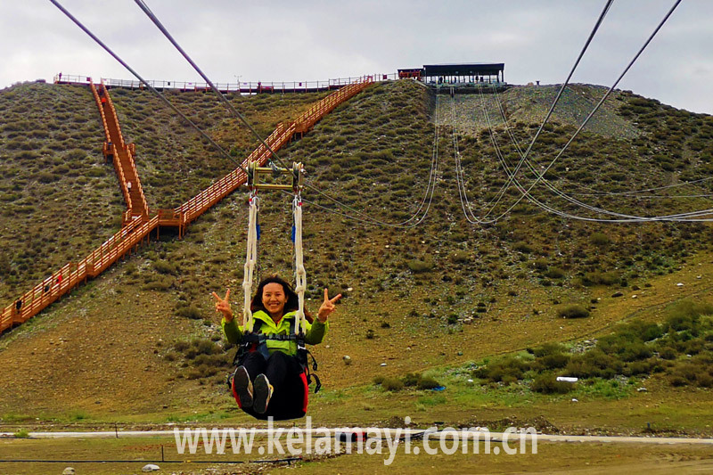 本報全媒體記者 崔文娟 攝 游客在獨山子大峽谷景區(qū)乘坐溜索游覽。