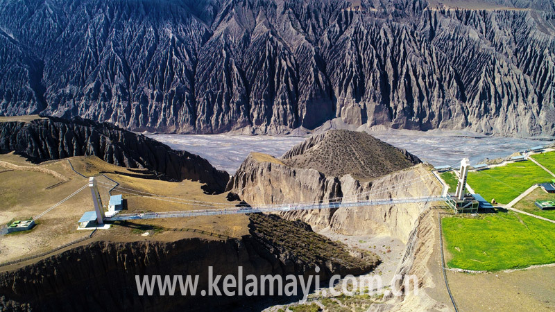 獨庫大玻璃橋全長185米,是新疆首座大型玻璃橋。橋下是溝壑縱橫的大峽谷地貌,游客行走在透明橋上,如同走在空中。