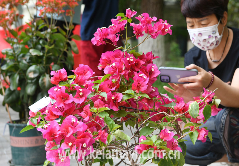 6月1日,光明鴻雁社區(qū)小廣場前,居民正在賞花。當天,該社區(qū)舉辦了花卉展,居民端來自家花卉展出、評比、交流。 本報全媒體記者 姚繼東攝