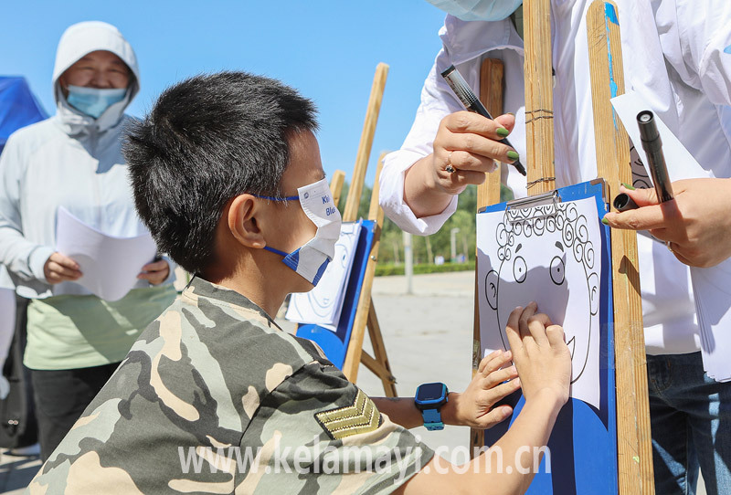 ????“集印章”是活動(dòng)現(xiàn)場(chǎng)的重頭戲。玩完一項(xiàng)游戲之后,工作人員在孩子的游園票上蓋一枚印章,集齊5枚印章以上就可以領(lǐng)取克拉瑪依日?qǐng)?bào)社為孩子們準(zhǔn)備的精美禮品。