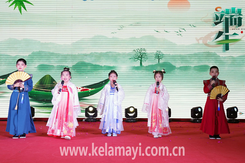 少兒才藝展演區(qū),身著漢服的孩子在朗誦《我們的端午》。本報(bào)全媒體實(shí)習(xí)記者 非爾代維斯·熱夏提攝