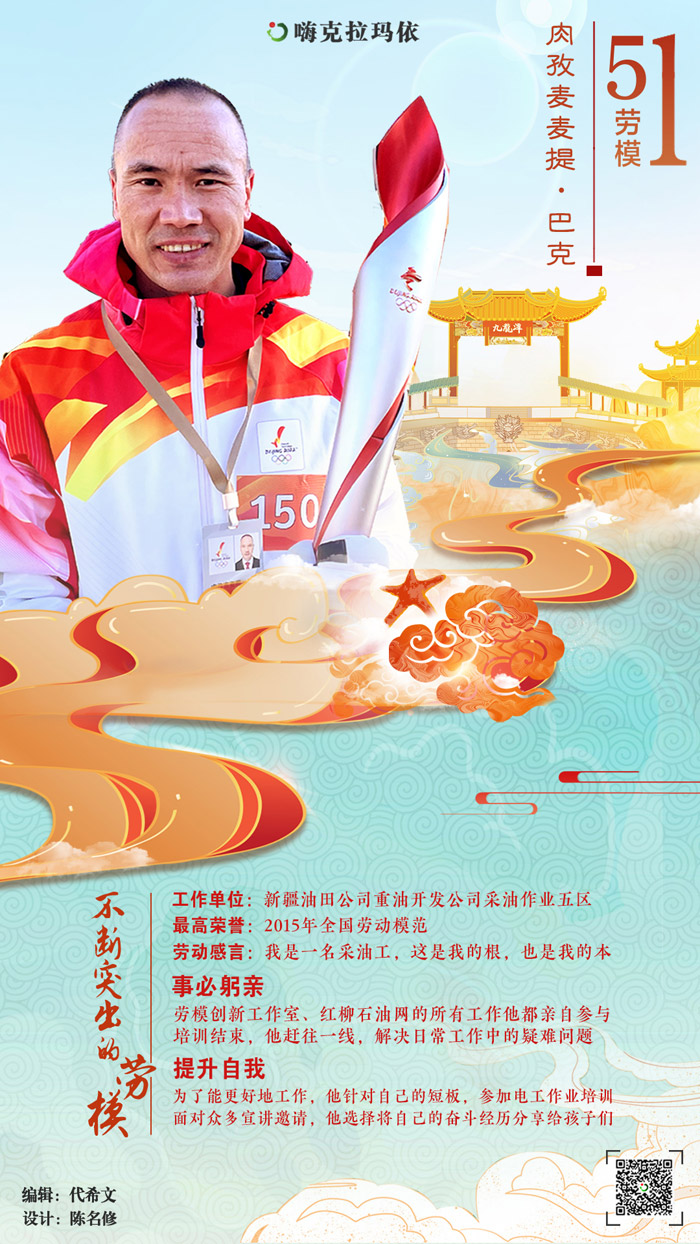 ????肉孜麥麥提·巴克現(xiàn)任新疆油田公司重油開發(fā)公司采油作業(yè)五區(qū)肉孜麥麥提·巴克班班長。雖已是明星,但他仍然堅(jiān)守在油田一線,為班組解決采油生產(chǎn)中的疑難問題。
