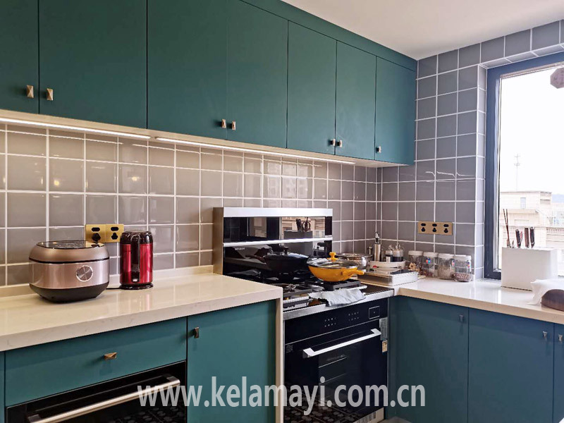 ????為了搭配房子的整體色調(diào),蔣女士家的櫥柜選用了不太常見的孔雀藍(lán)色。被問到這個顏色是否是屬于專門定制后,她介紹說:“為了挑這個顏色,我在櫥柜門店花了整整一天時間,事實上,每家櫥柜定制門店都有非常豐富的色卡可以挑選,只要消費者肯花時間,就能挑出符合自己需求的、較為個性化的顏色。”