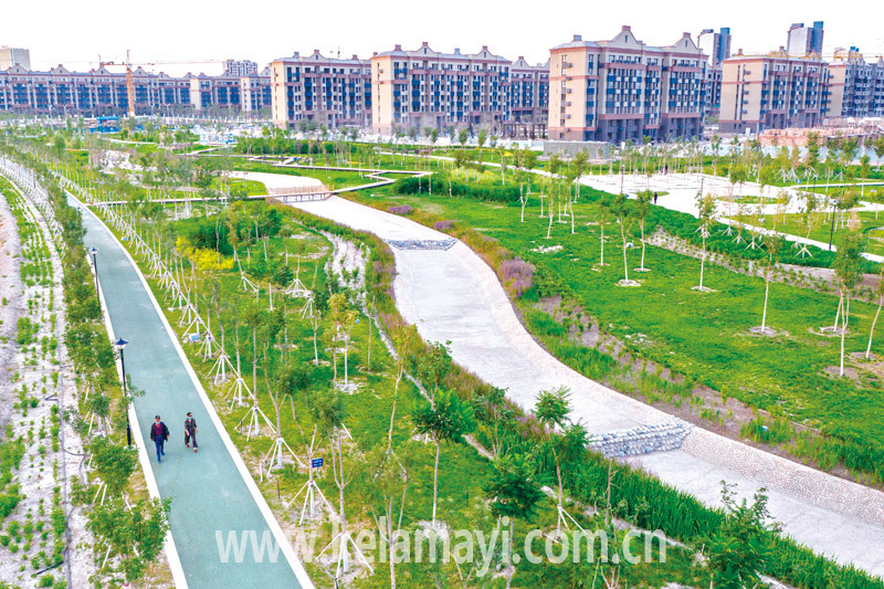 迎賓花園(三期)及其西側(cè)的城南帶狀公園。全媒體記者?努爾買買提·艾山 攝
