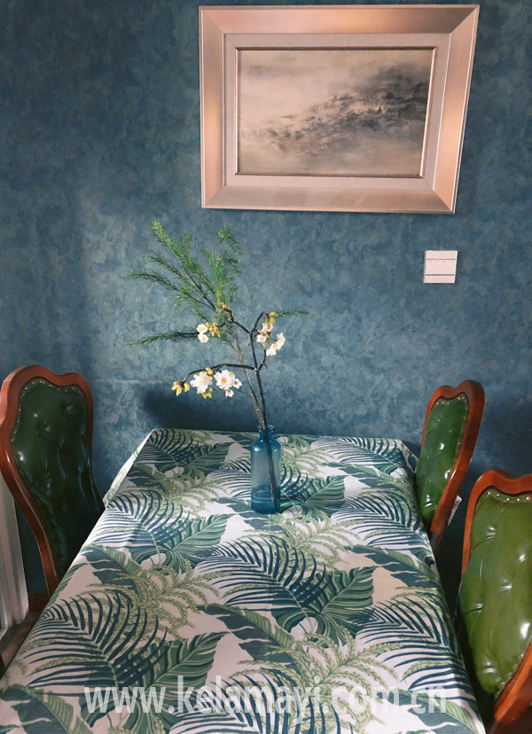 ????孔雀藍(lán)色的壁紙、棕色的皮質(zhì)沙發(fā)、印花的各色桌布……走進(jìn)張女士位于我市碧水花苑小區(qū)的家,豐富的家居配色讓人仿佛瞬間置身于一幅油畫(huà),在感慨真是“一步一景”的同時(shí),還能感受到主人那份精致優(yōu)雅的生活態(tài)度。而最終能營(yíng)造出這樣充滿(mǎn)藝術(shù)感的裝修效果,還得歸功于張女士裝修時(shí)的堅(jiān)持。