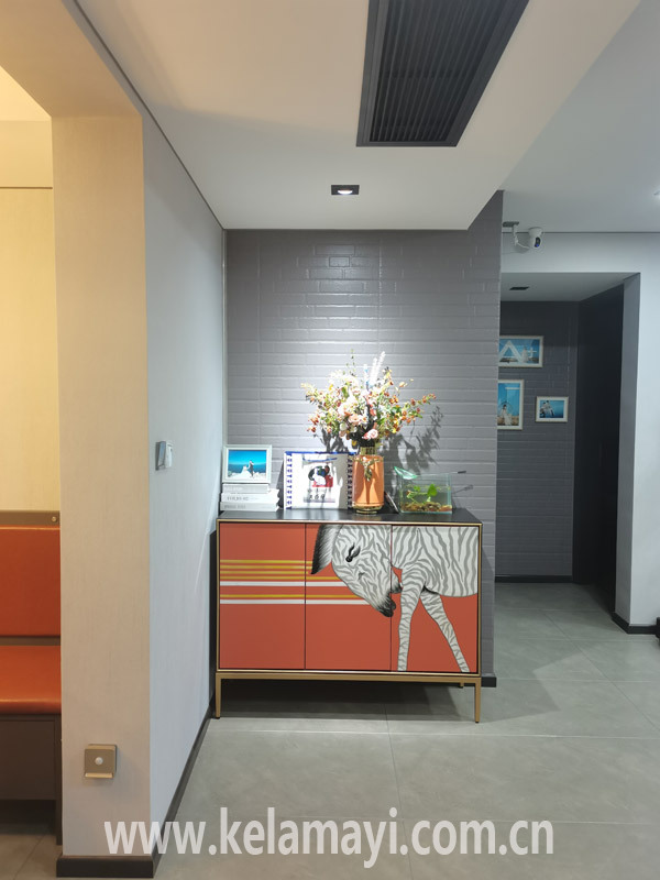 ????而雙面柜的隔斷方式,吳先生還用在了玄關(guān)處。吳先生說,房子交工后,一進入戶門直對的就是衛(wèi)生間和一間臥室,沒有視覺緩沖,空間格局也中規(guī)中矩。幾經(jīng)考慮,他將衛(wèi)生間和臥室的空間進行了重新布局,并在門前做了一個雙面柜,柜子一邊是玄關(guān),一邊則是妻子的化妝臺。