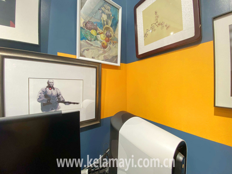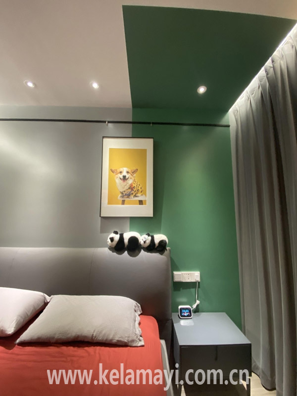 ????“藝術漆的顏色選擇非常多,光紅色就有五六十多種,這為我大膽使用撞色提供了很好的條件?!眲⑴空f,“在兒童房里,我用了中性灰色與綠色的撞色,在書房,我用了藏藍色與明黃色的撞色,這些顏色都是油漆師傅在我家現場調配的,明暗撞色形成的強烈對比也讓我家的裝修風格變得十分獨特。”????????????
