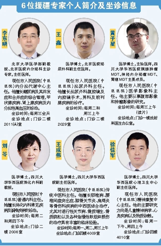 ????●本批專家分別是內(nèi)分泌科、泌尿外科、醫(yī)學(xué)影像科、消化內(nèi)科、中醫(yī)科、精神康復(fù)科的專家