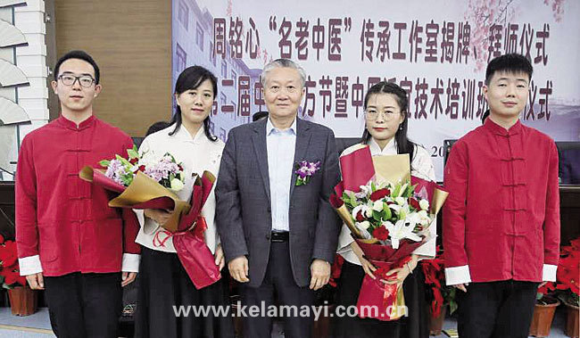 ????該院相關(guān)負(fù)責(zé)人說(shuō),近兩年來(lái),有多位疆內(nèi)外中醫(yī)名家來(lái)院開(kāi)設(shè)名醫(yī)工作室和師承工作,周銘心教授作為全國(guó)知名中醫(yī)專家,一直關(guān)注克拉瑪依地區(qū)中醫(yī)事業(yè)的發(fā)展,自2017年中醫(yī)醫(yī)院成立至今,多次來(lái)院親臨指導(dǎo),名老中醫(yī)傳承工作室設(shè)立和中醫(yī)適宜技術(shù)推廣等多項(xiàng)工作都得到了他的指導(dǎo)幫扶。今天的拜師儀式更是充分體現(xiàn)了周銘心教授對(duì)市人民醫(yī)院(中醫(yī)醫(yī)院)青年中醫(yī)才俊寄予的厚愛(ài)和期望,希望在周銘心教授的幫助下,醫(yī)院能更好更快地培養(yǎng)一批本地區(qū)高層次的中醫(yī)藥人才隊(duì)伍。