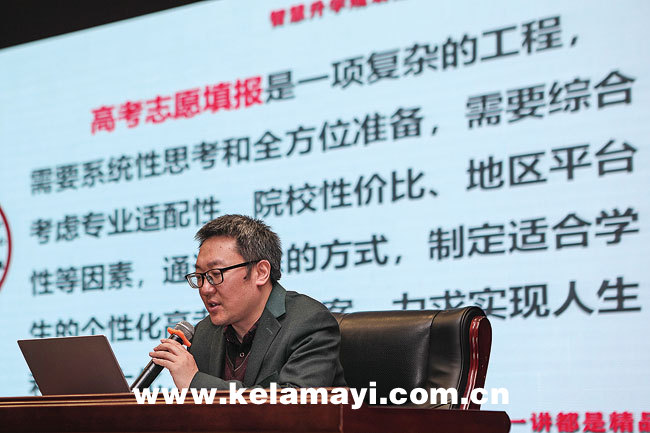 ????距2020年全國高考還有半年,如何提早幫助考生科學地填報志愿?1月11日下午,克拉瑪依日報社和都市消費晨報社在北師大克拉瑪依附校聯(lián)合舉辦了高考志愿公益講座,為高三考生和家長答疑解惑。????講座上,新疆晨報教育科技有限公司教師賈學成圍繞著填報志愿的十大誤區(qū);如何提前了解高考志愿填報時間、辦法及注意事項;志愿欄目的設置;高考錄取批次的劃分及各批次最低控制分數(shù)線的劃定、線差、錄取規(guī)則、檔案調配等方面進行了講座。