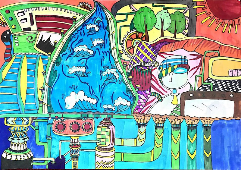 科學幻想繪畫作品《蓄水系統(tǒng)》。 陳姿潼 /作