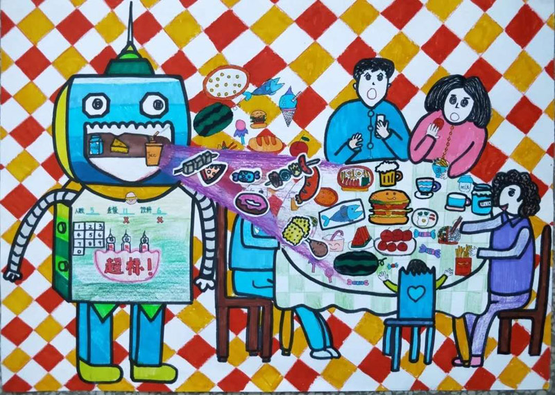科學幻想繪畫作品《點餐超標檢測機器人》。張瑤 /作