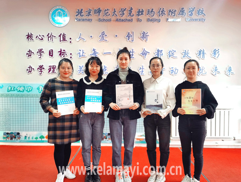 北師大克拉瑪依附校小學(xué)數(shù)學(xué)組5位教師將“五個幾個幾”工程匯編成集。(圖片由北師大克拉瑪依附校提供,攝于疫情前)