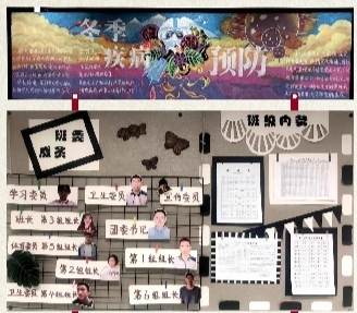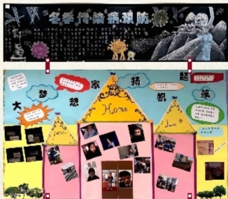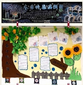 ????值得一提的是,學(xué)生將黑板報設(shè)計與班級文化建設(shè)融為一體。例如,高二(7)班繪制的黑板報畫面以動畫《冰雪奇緣》為主,所以學(xué)生為班級也配套了雪花、城堡卡片等班級文化墻裝飾品;高二(6)班的黑板報畫面以國風(fēng)為主,所以班級文化墻裝飾使用了水墨畫、臉譜等元素。