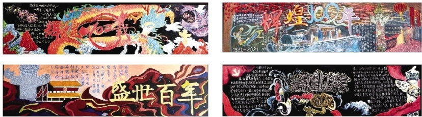 該校高二學(xué)生繪制的“建黨百年”班級文化板報(bào)