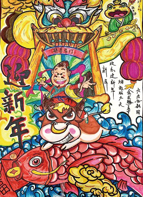 “愛國學(xué)·誦詩詞·繪節(jié)日”特色社會實(shí)踐活動中,學(xué)生繪制的節(jié)日圖《春節(jié)》。