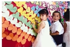 西月潭幼兒園畢業(yè)典禮中,孩子們在簽名墻上寫下自己的姓名。圖片由西月潭幼兒園提供