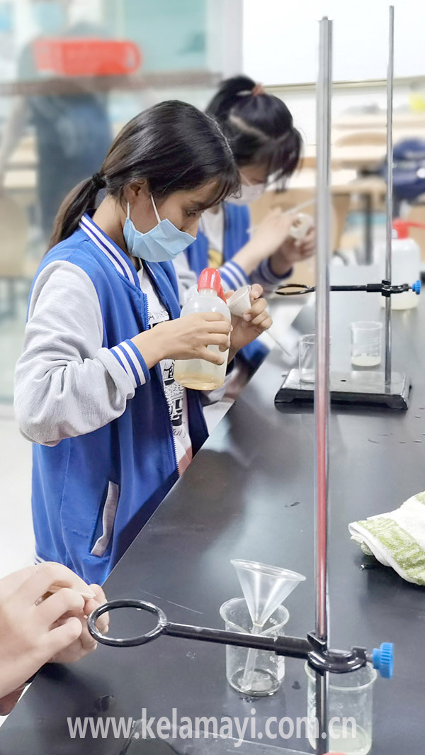 初三(7)班學(xué)生在化學(xué)實(shí)驗(yàn)探究課程上進(jìn)行凈化黃泥水實(shí)驗(yàn)。