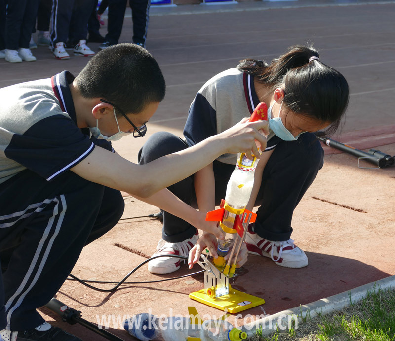實(shí)驗(yàn)中學(xué)學(xué)生進(jìn)行水火箭組裝。圖片由市實(shí)驗(yàn)中學(xué)提供