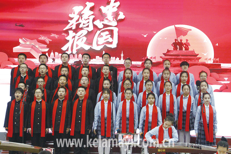 實驗中學(xué)舉辦第三屆“愛國歌曲大家唱”活動。 (圖片攝于疫情前)