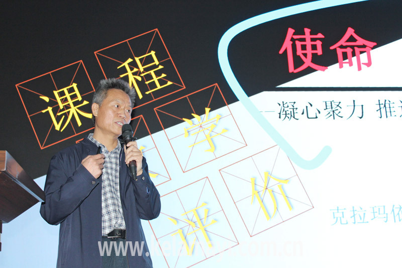 市教研所副所長(zhǎng)馮祥杰向獨(dú)山子第二中學(xué)全體教師作“新課程新教材實(shí)施”主題報(bào)告。