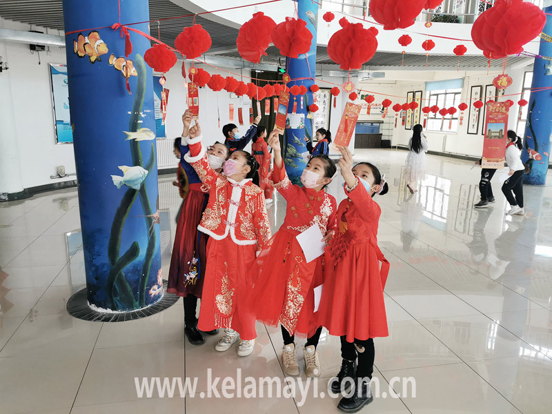 ????2021年12月29日下午,實驗小學圓形展示廳張燈結彩。該校二年級和四年級學生身著漢服、唐裝,手持游園票,在學校首屆“快樂語文節(jié)”活動中感受著中華優(yōu)秀傳統(tǒng)文化的魅力。