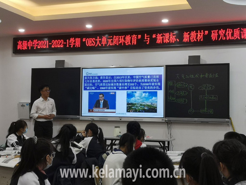 (圖片由市高級(jí)中學(xué)提供)高級(jí)中學(xué)“OES”大單元閉環(huán)教育與“新課標(biāo)、新教材”研究?jī)?yōu)質(zhì)課展示活動(dòng)中,地理組教師為學(xué)生講授“大氣的組成和垂直分層”課程。