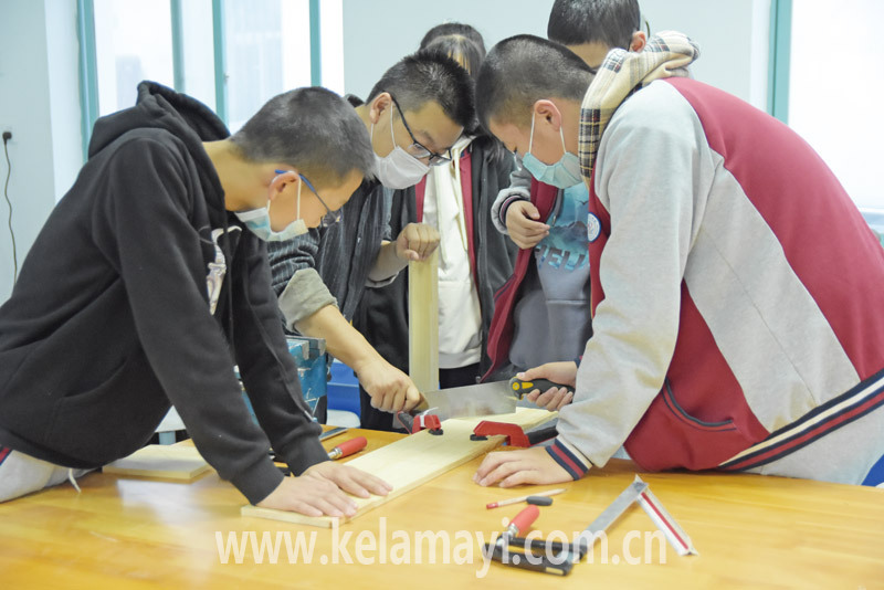 青少年科技活動(dòng)中心在第二中學(xué)開(kāi)設(shè)木工體驗(yàn)銜接課。 圖片由青少年科技活動(dòng)中心提供